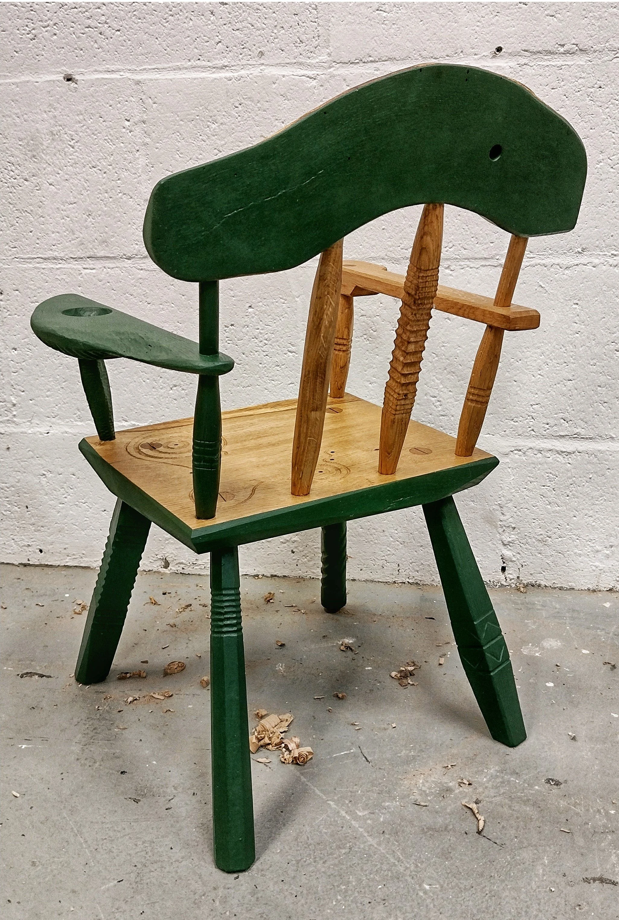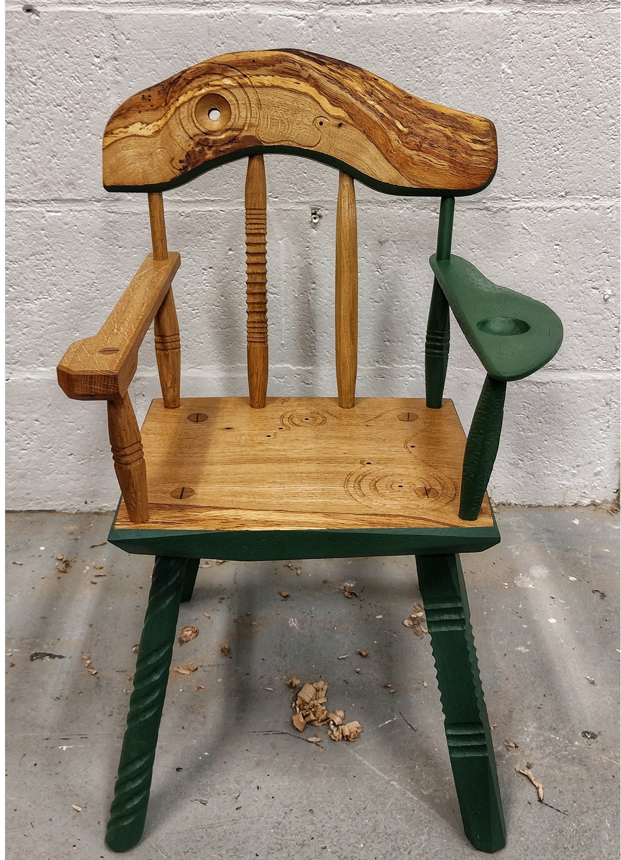 A playful take on a primitive Irish “hedge chair,” each component is uniquely hand shaped with carved details and tactile textures to be explored and enjoyed by the sitter.